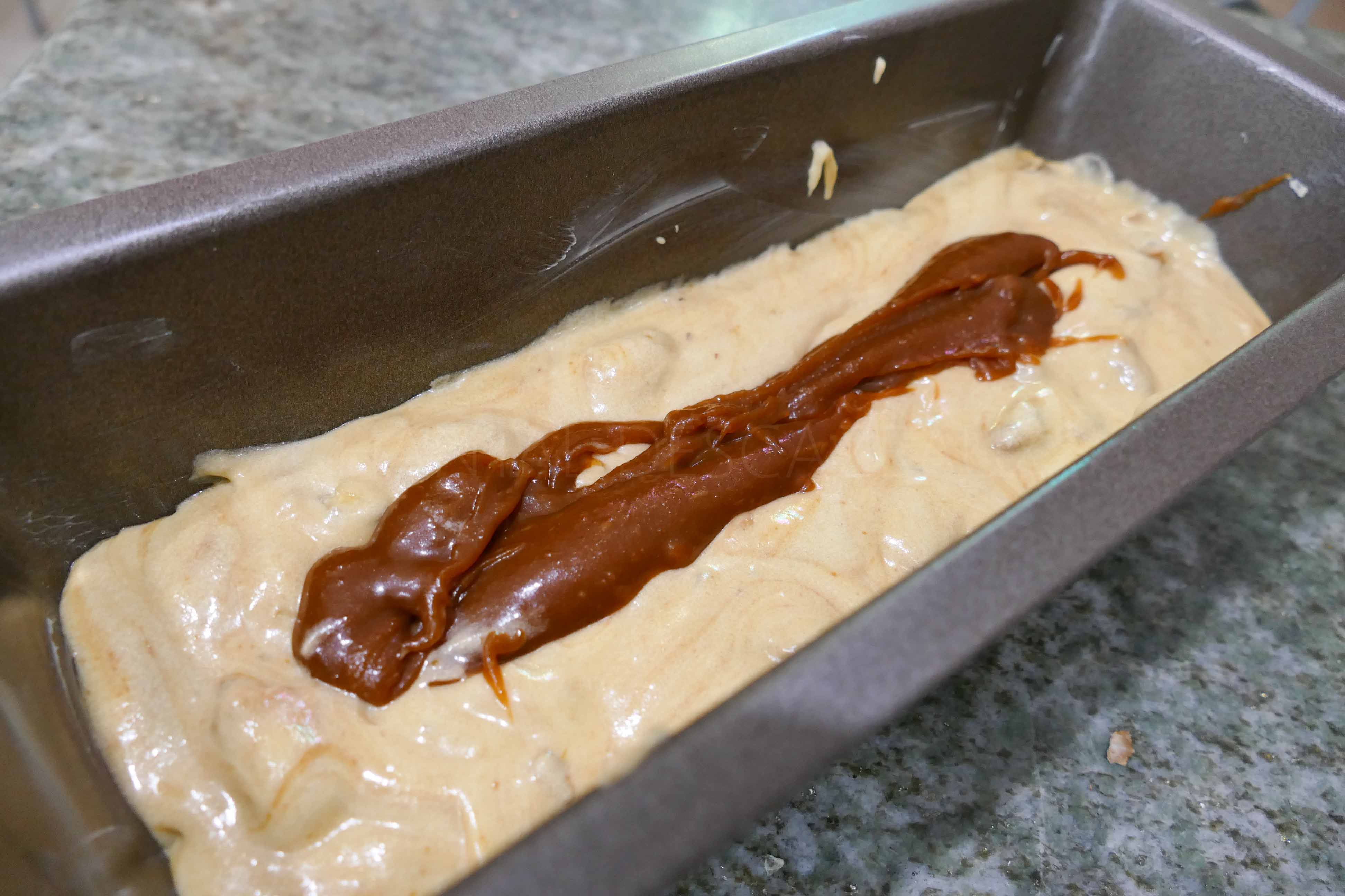 Verser le rhum, 100 g de noix torréfiées et 100 g de caramel. Mélanger. Verser dans un moule à cake beurré en intercalant quelques belles marbrures de caramel.