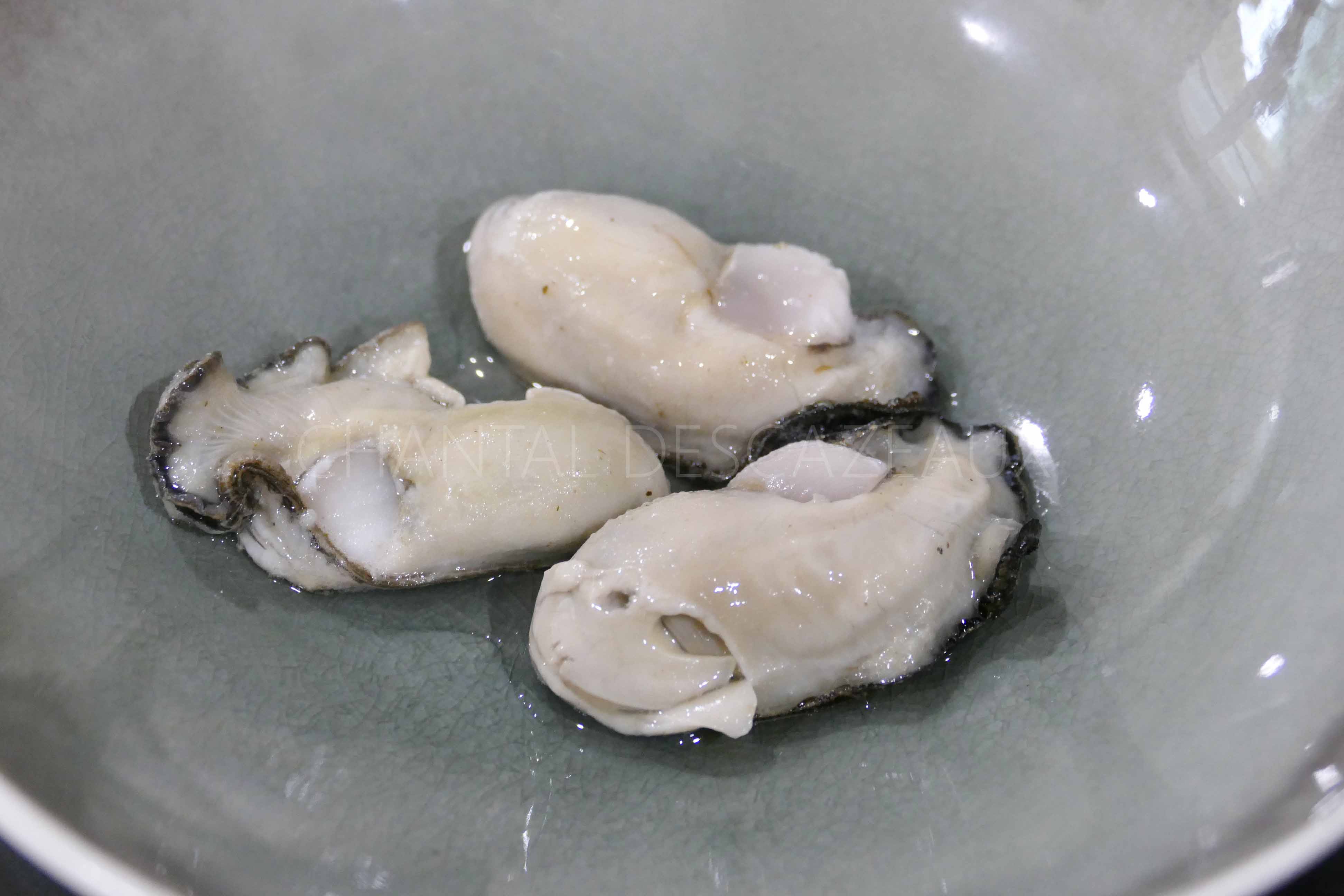 Huîtres pochées, topinambours, Colonnata et sarrasin