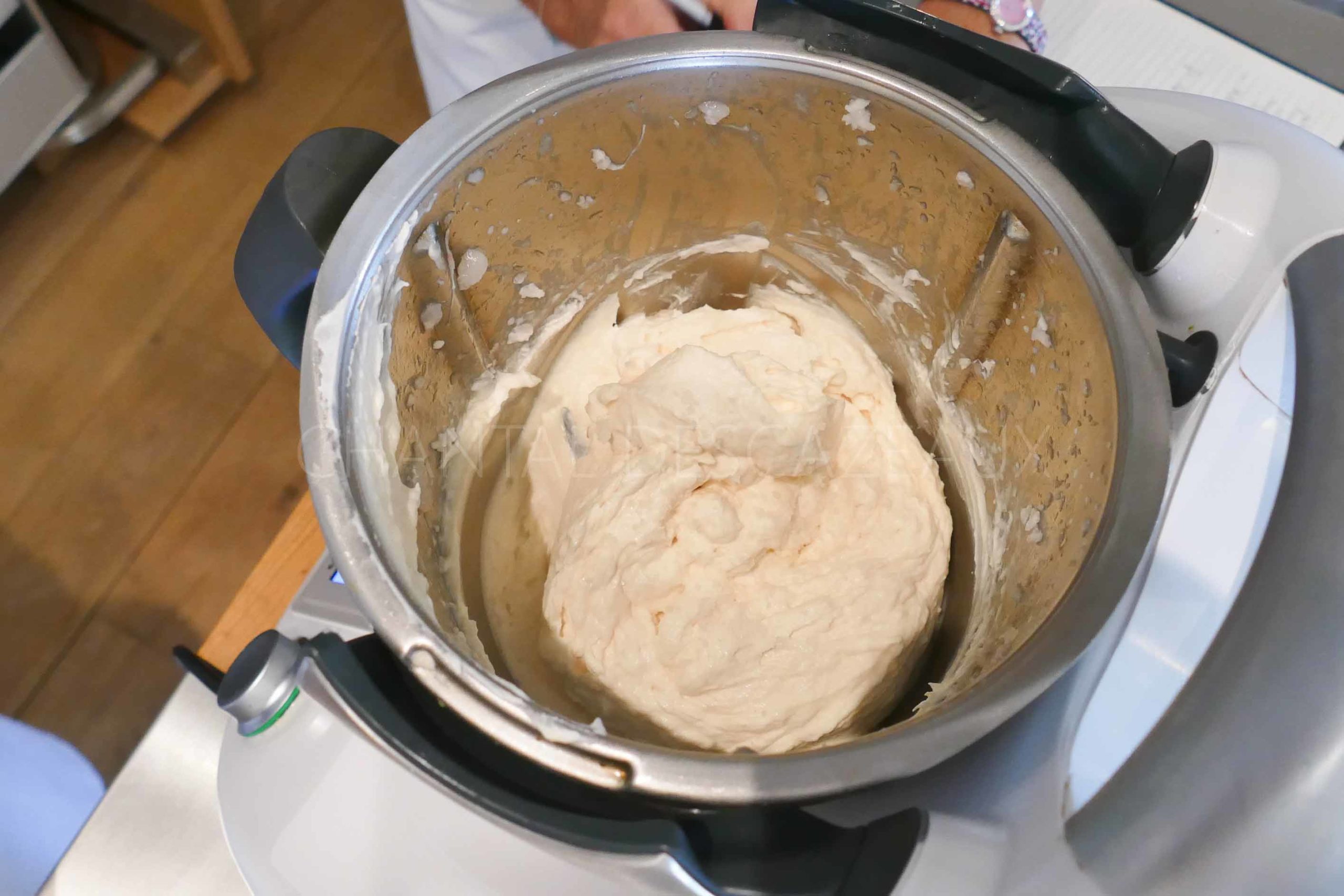 Pour info, mettre la cuve au préalable au frigo pour éviter à l’appareil de chauffer lors de la réalisation de la mousseline de poisson.