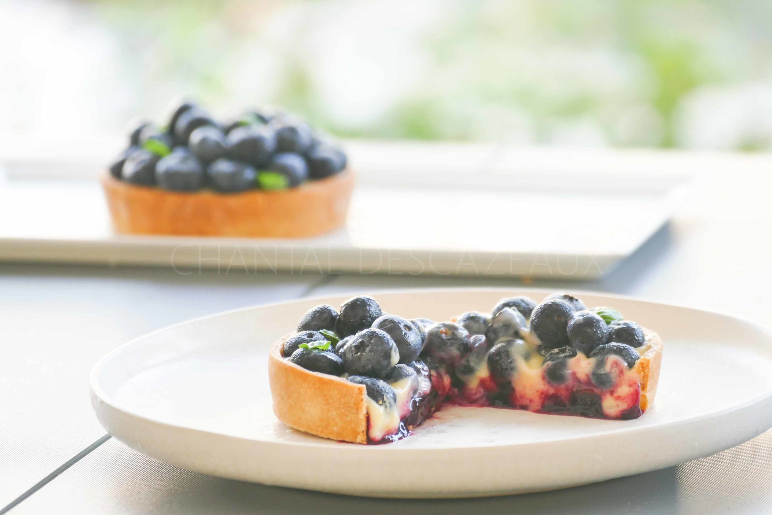 En pleine saison des myrtilles, voici une recette de dessert aux myrtilles, une tartelette myrtilles et crème de citron parfumée au basilic. Rien de compliqué, une pâte sucrée, un confit de myrtilles, une crème de citron (le basilic est facultatif) et une couverture de myrtilles fraîches sur le dessus. C’est gourmand, acidulé, avec du croustillant et de l’onctuosité, un dessert qu’on aime à n’importe quelle heure de la journée.