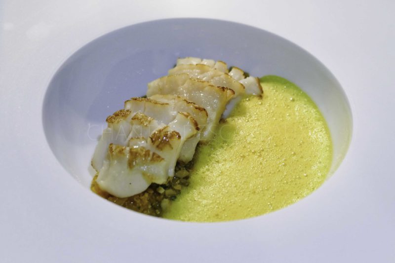 Black cod, déclinaison de poireau, poêlé et en vinaigrette, croûte d’anchois et purée de pommes de terre fumées… Voilà encore un plat d’une simplicité apparente, mais d’une extraordinaire finesse et incroyablement équilibré. Fabuleux.