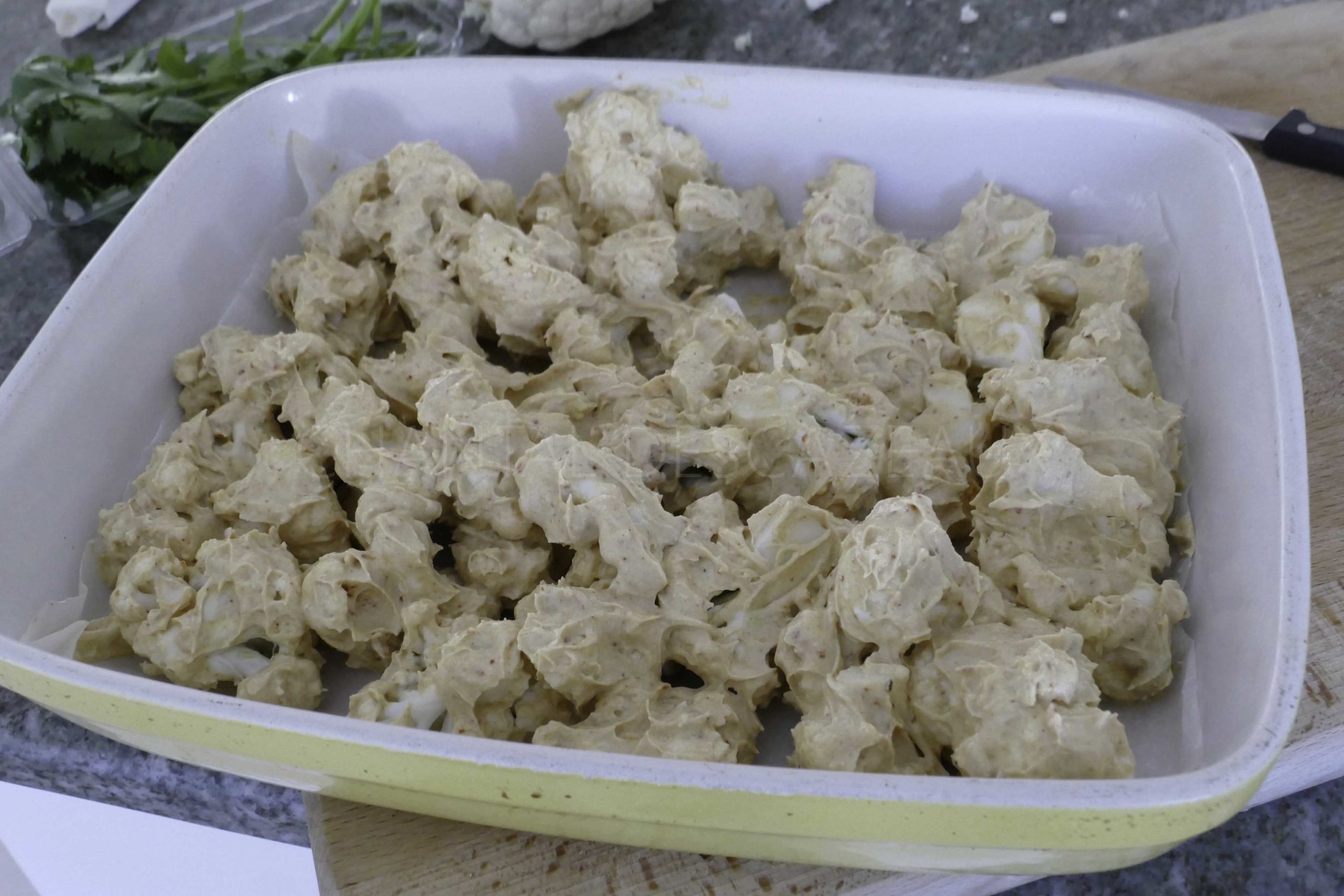 Ajouter les sommités de chou-fleur et bien mélanger afin de les enrober parfaitement avec ce mélange.
