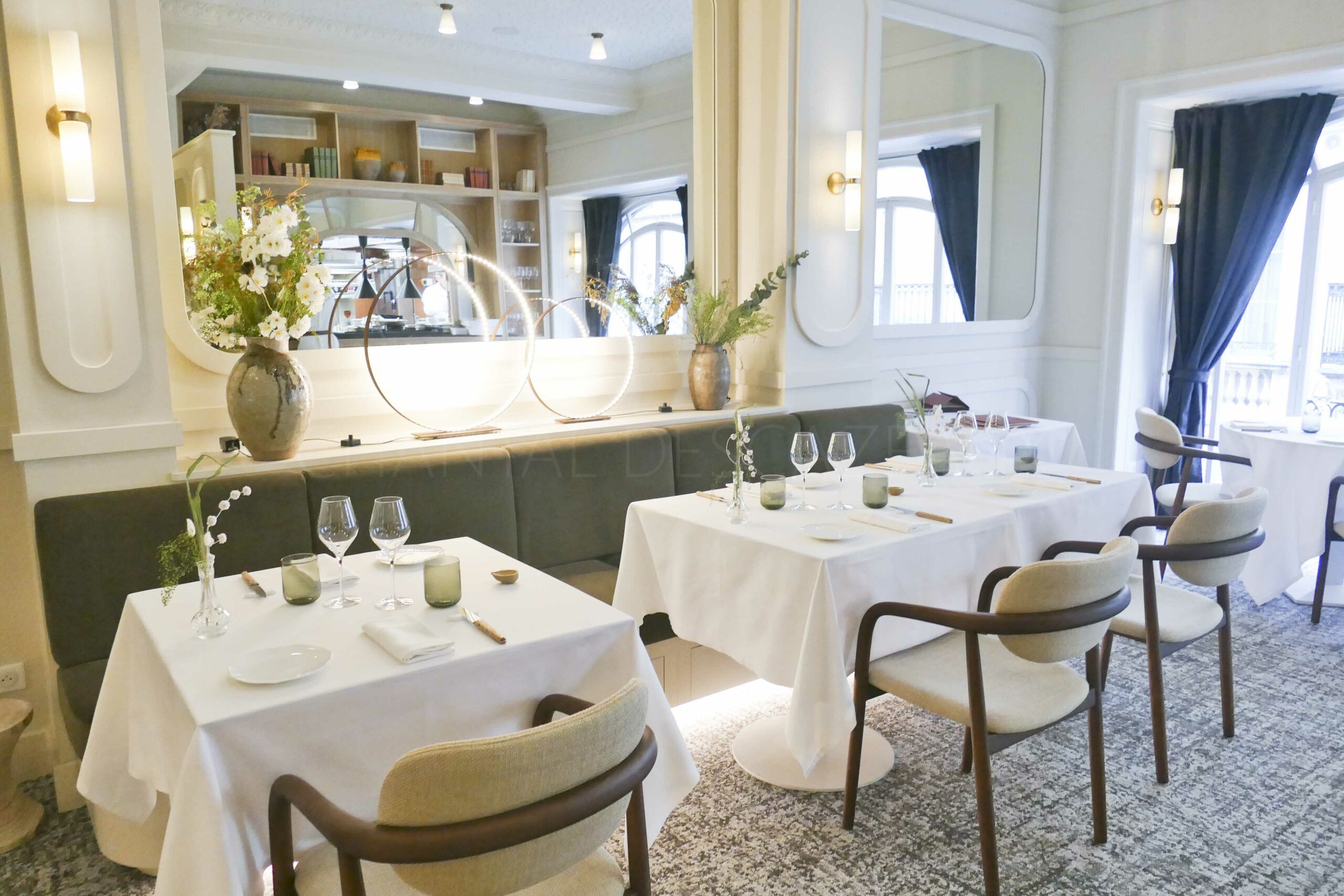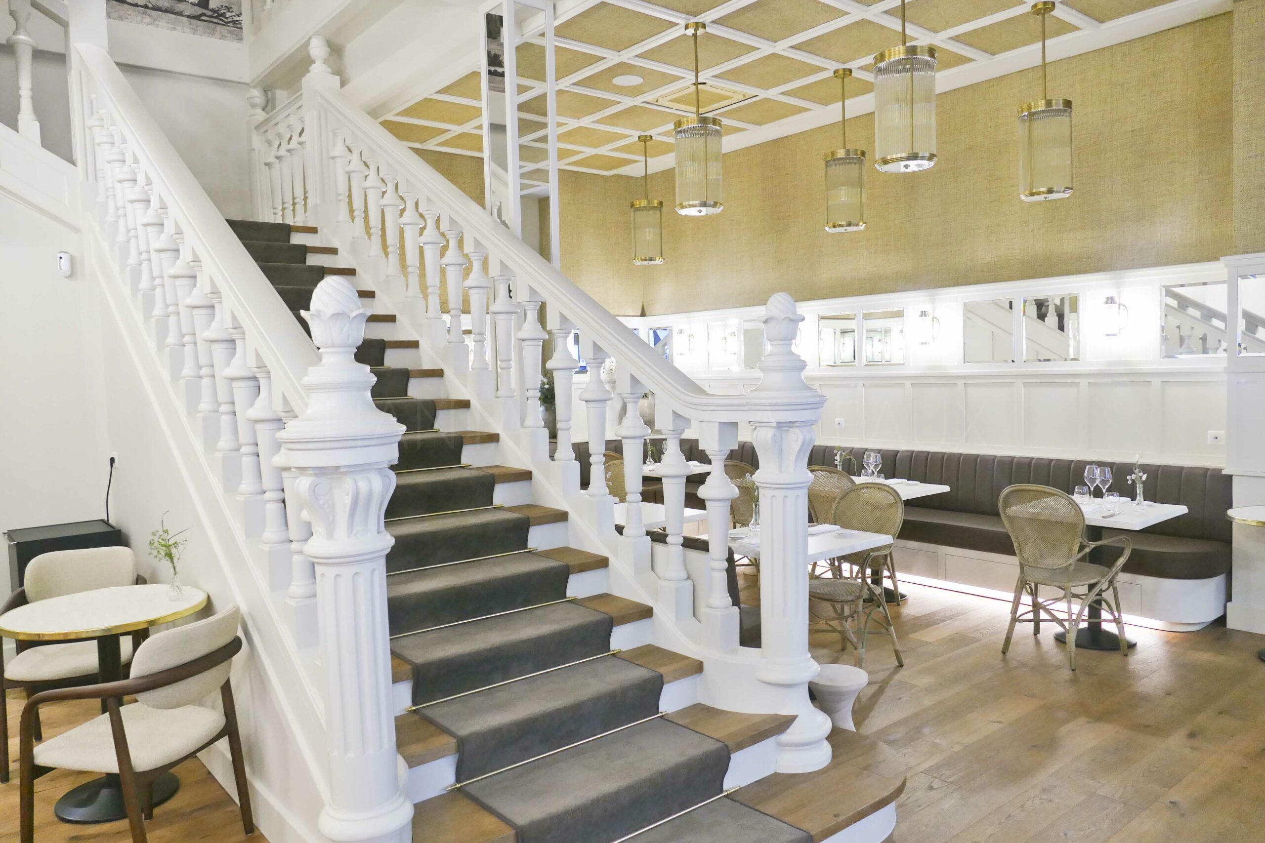 En poussant la porte, on découvre un mélange de classicisme et de modernité avec une décoration chic, chaleureuse et élégante, et on emprunte l’escalier majestueux qui nous conduit à La Table gastronomique AMICIS.