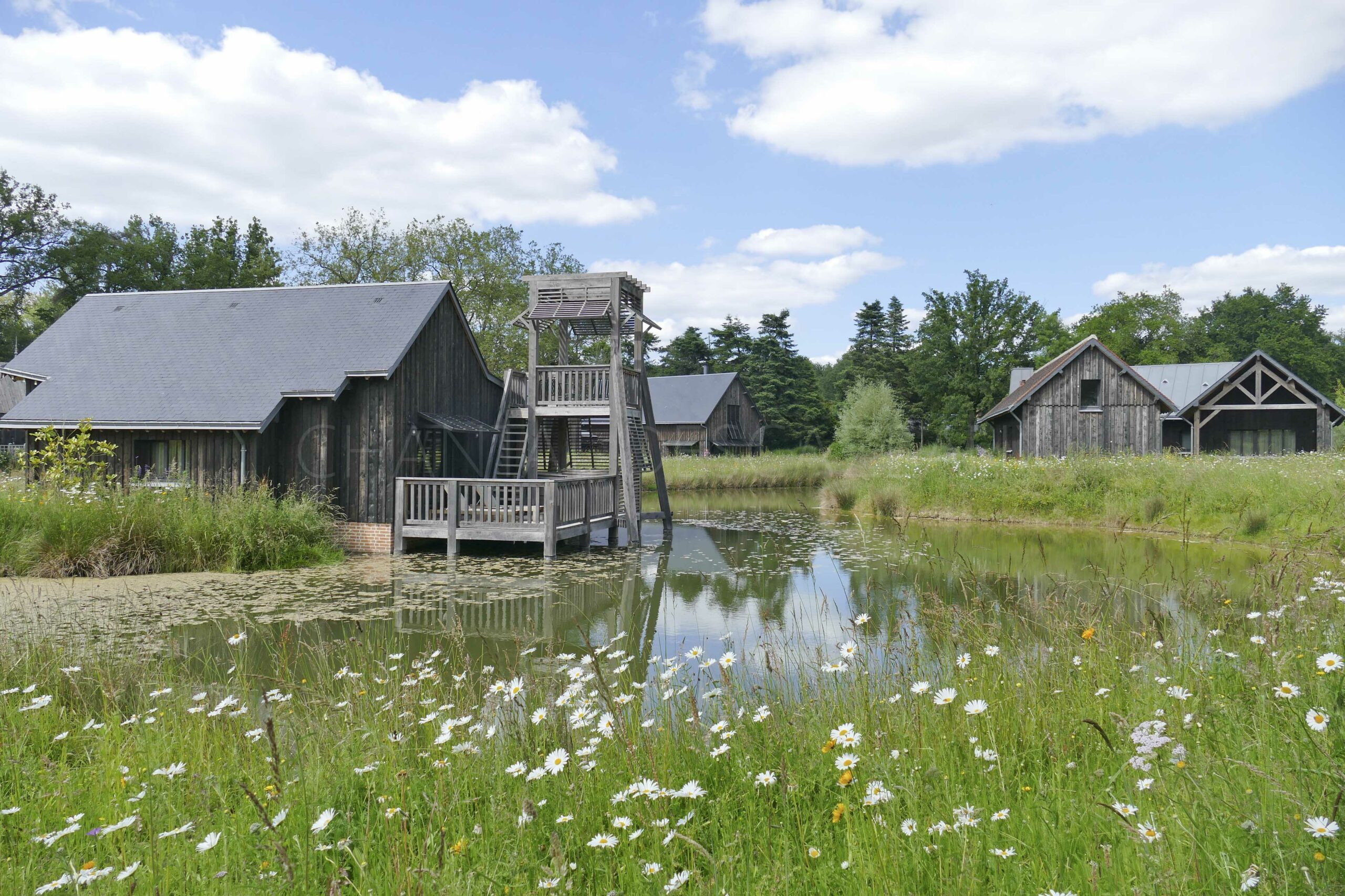 Le spectacle visuel de la « Jachère fleurie » donne à l’ensemble du hameau une sensation de bien-être et de quiétude comme nulle part ailleurs. Chic et bohème, le lieu est propice à l’évasion, en parfaite harmonie avec l’environnement. Un ensemble de bâtisses atemporelles semble avoir toujours fait partie du paysage grâce à l’utilisation de matériaux propres à la région, tels que le zinc ou l’ardoise naturelle.