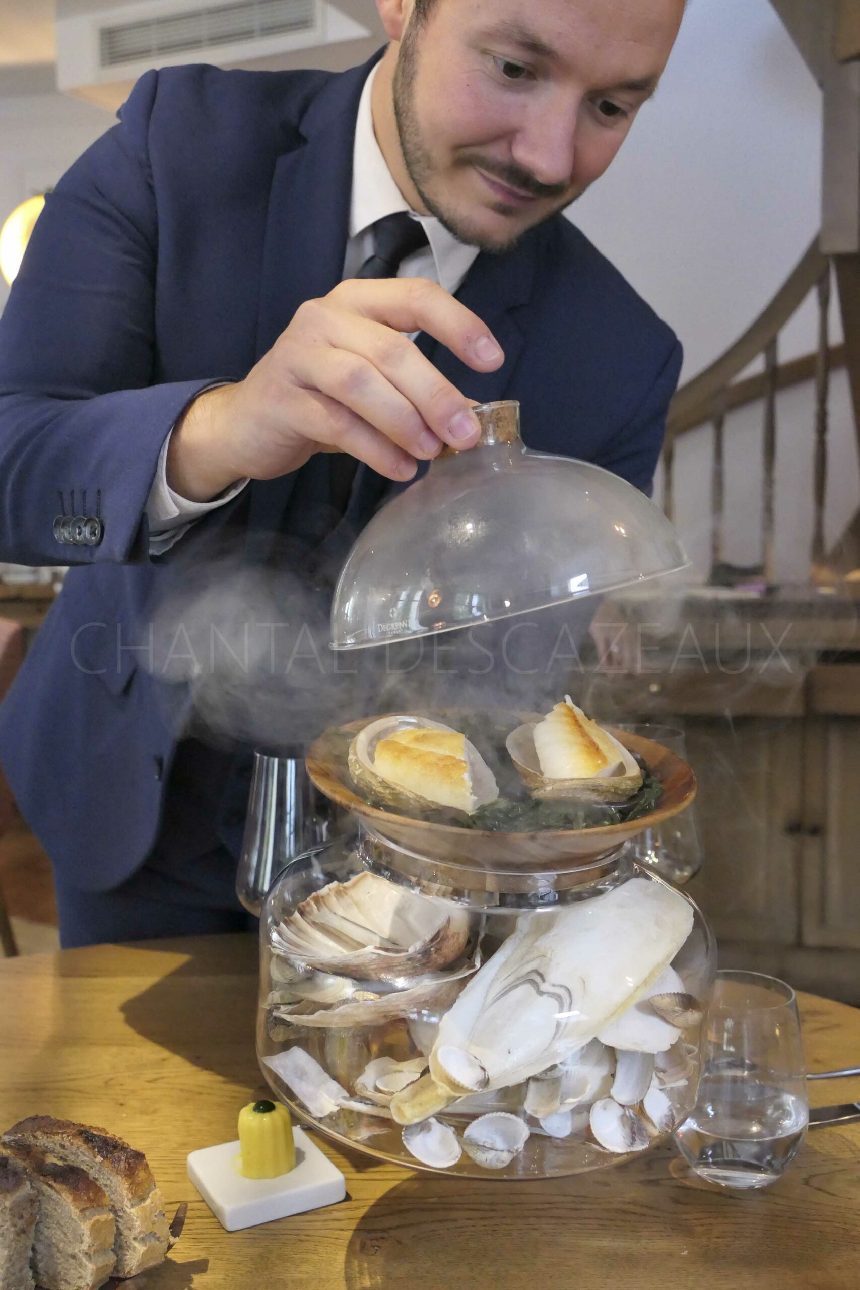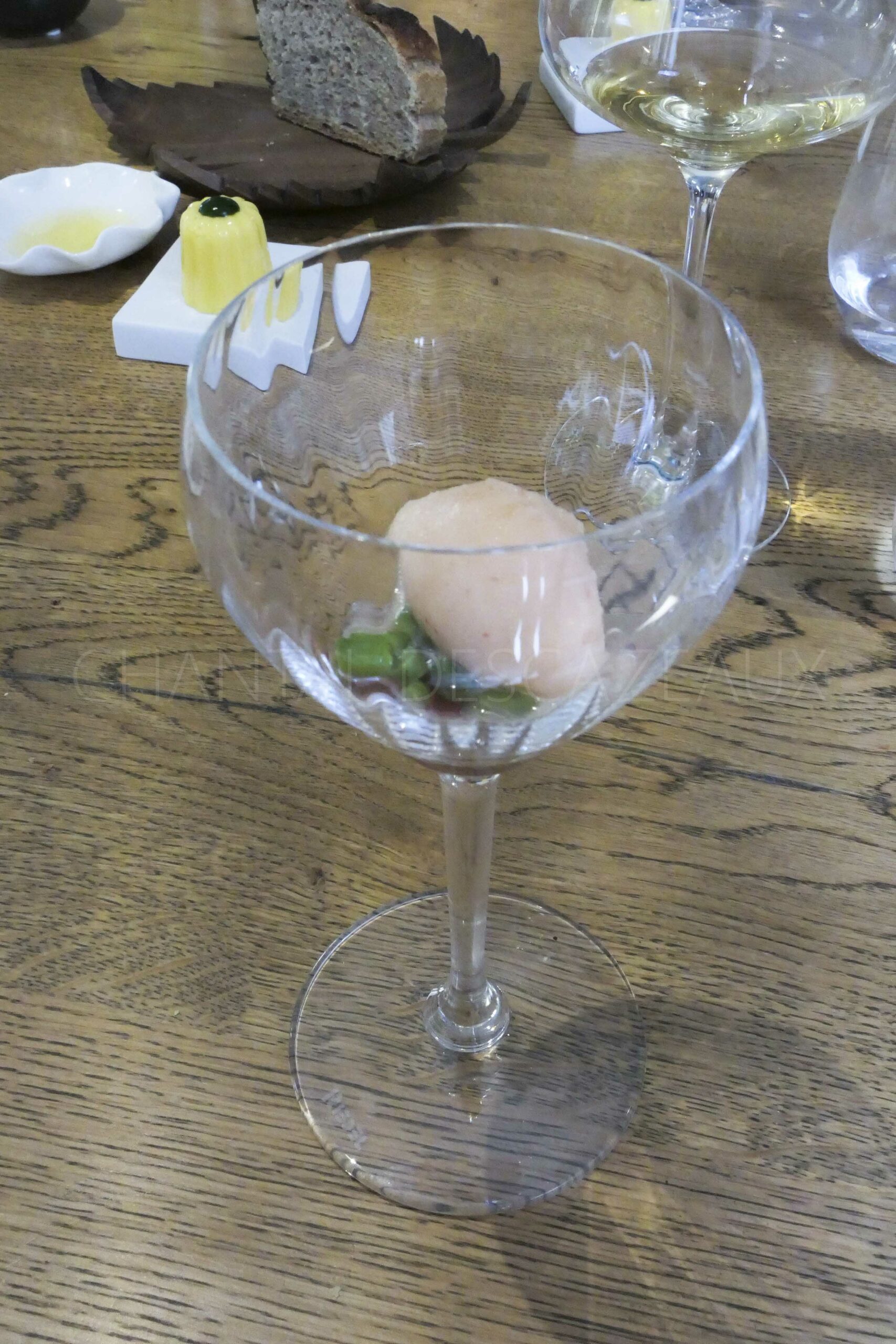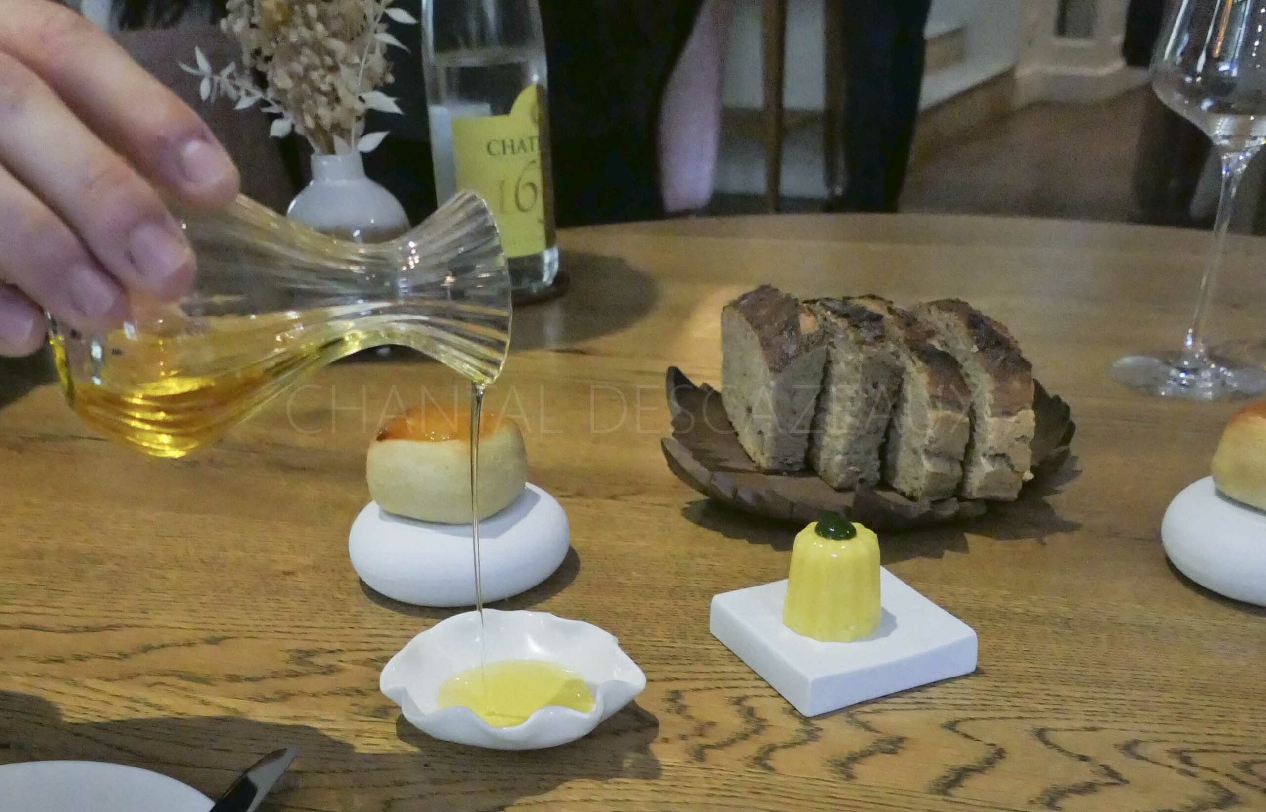 Vient alors une palette à la fois ludique et inattendue, une façon d’éveiller les sens avant la mise en bouche lors du service du pain