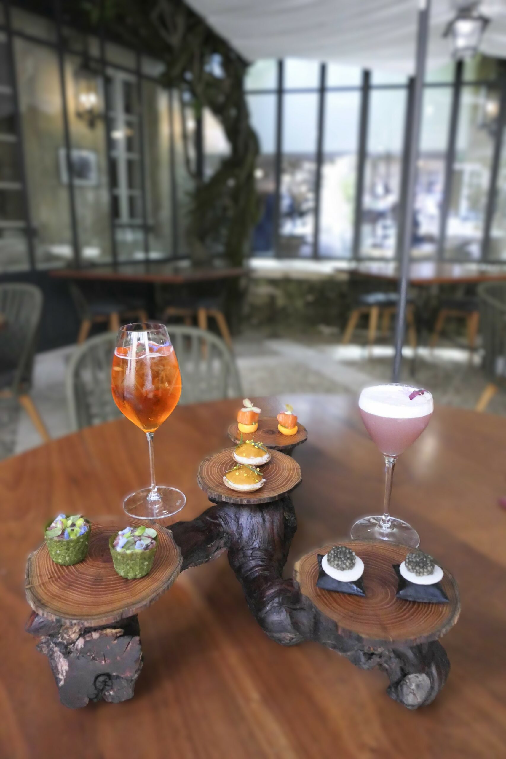 Pour accompagner les apéritifs, mises en bouche délicatement présentées sur un ceps de vigne :