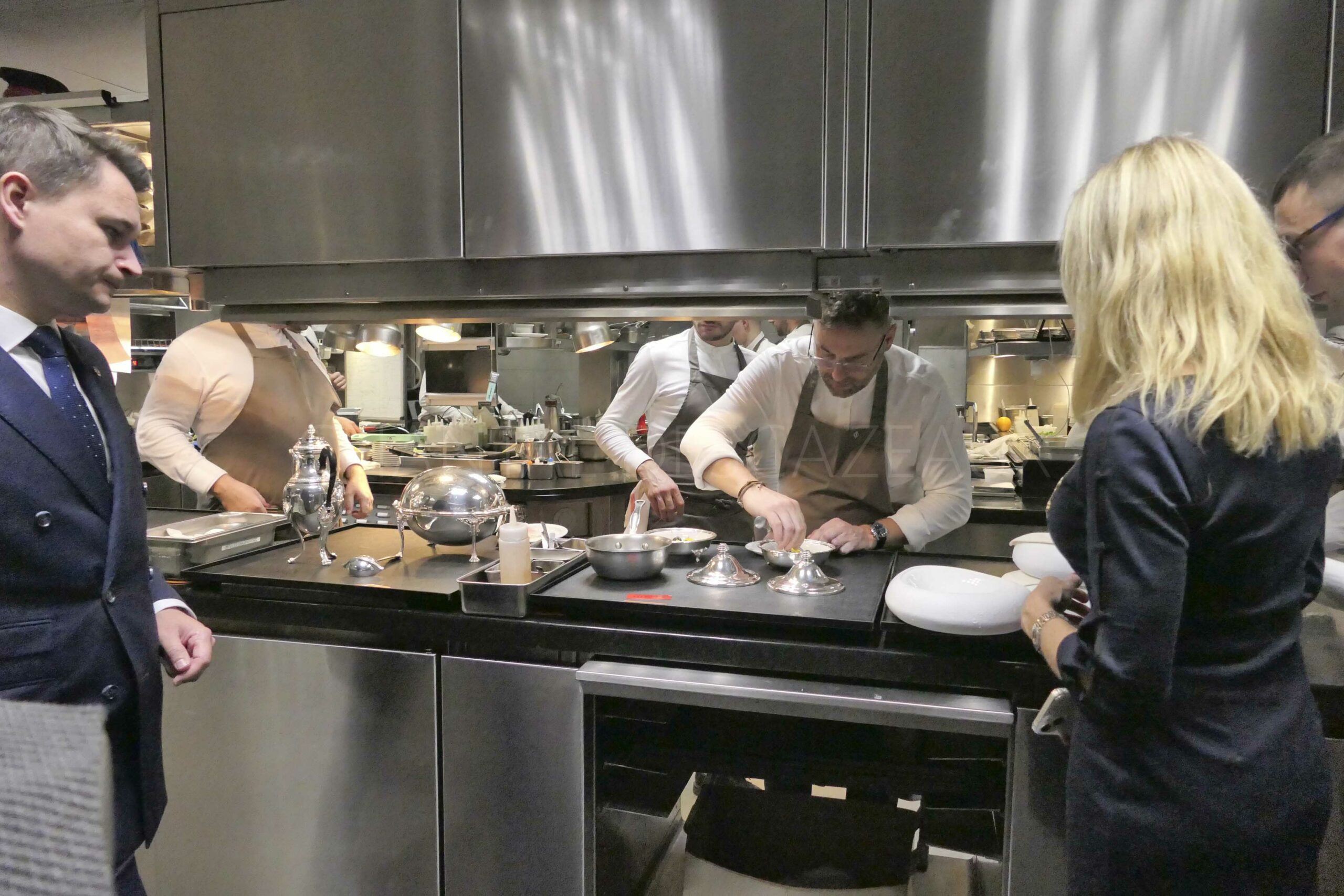 A ce moment précis, on est invités à se lever de table pour passer côté cuisine et déguster ce Trou Normand en compagnie d’Arnaud Donckèle.