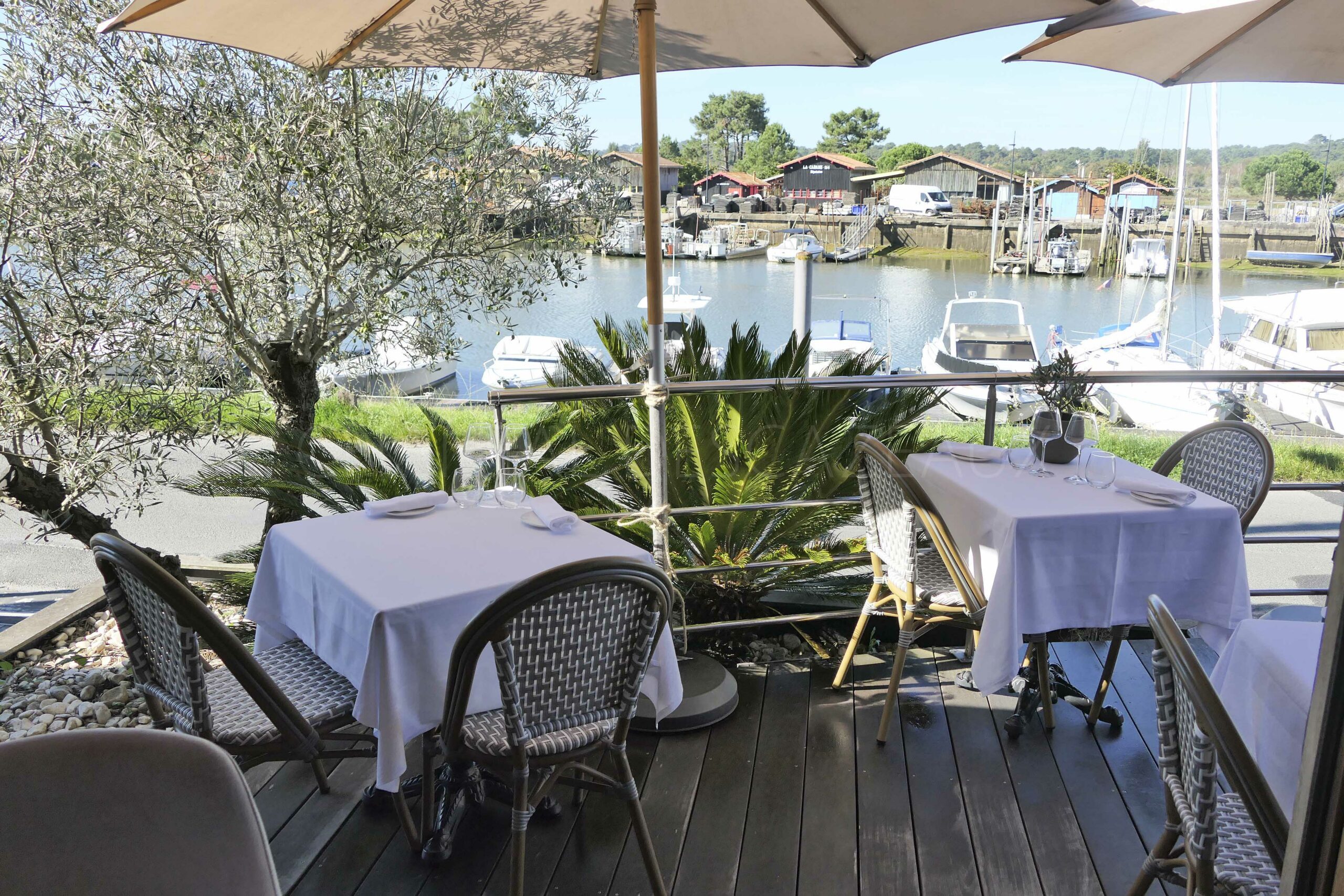 Au cœur du Bassin d’Arcachon, La Table de l’Oléa est idéalement située sur les rives pittoresques du port ostréicole de La Teste-de-Buch.