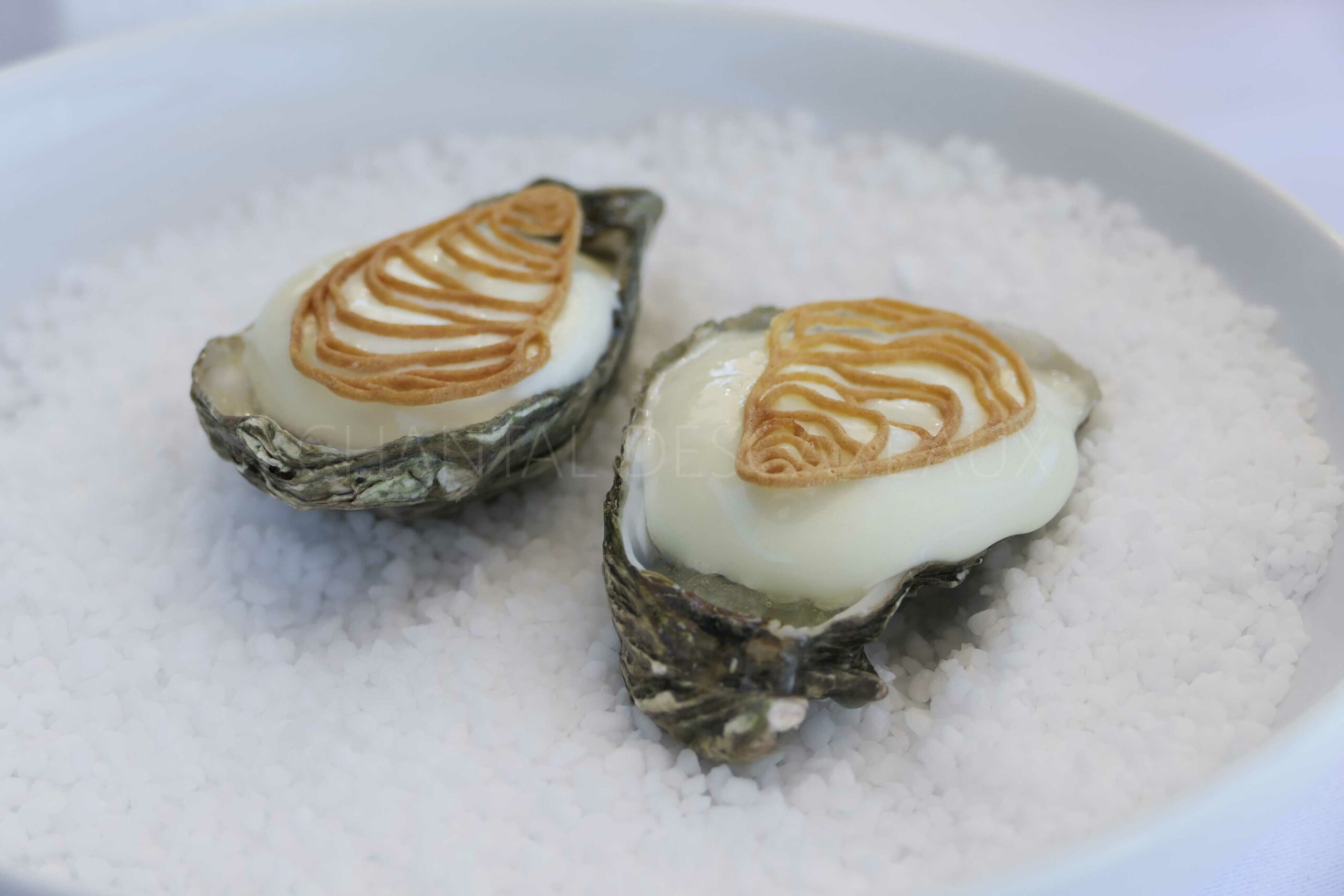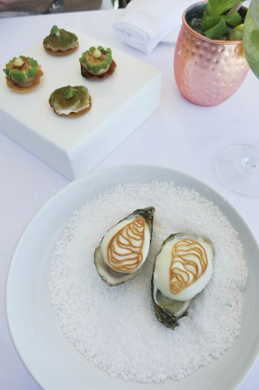 Huître bonbon Granny smith / Tartelette foie gras, crème brûlée, coing / Tartelette St-Jacques cèpes