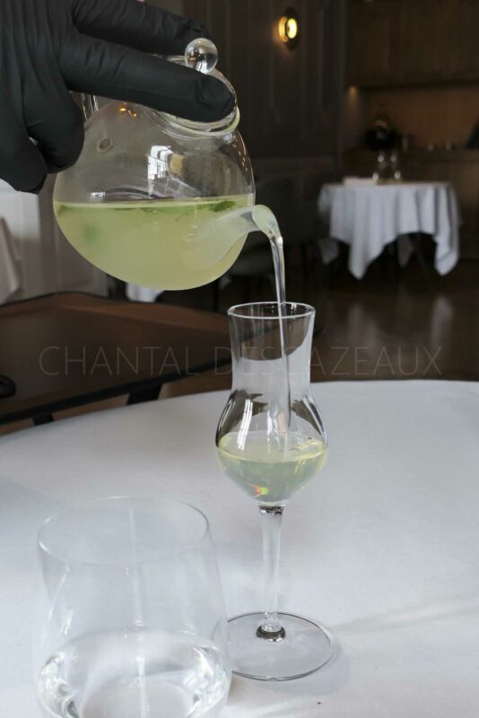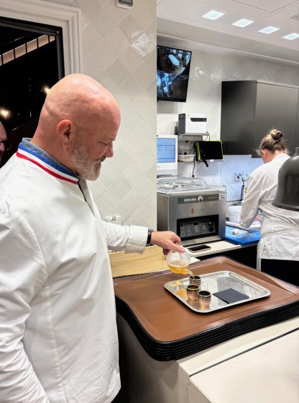 Avant de débuter le repas, chaque client est invité à passer en cuisine où le Chef Philippe Etchebest offre un petit shot pour préparer les papilles: