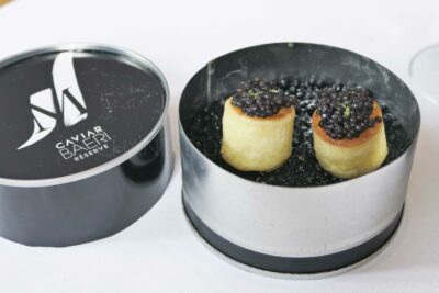 Poire et mezcal ; esturgeon du beurre à l’arête avec le caviar de la Maison Neuvic