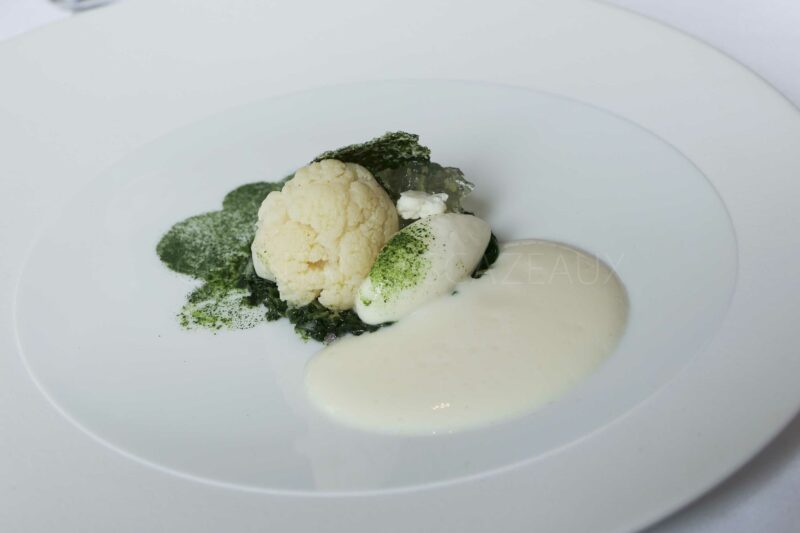 Harmonie entre Terre et Mer – Chou fleur en textures, algues, saké