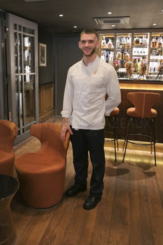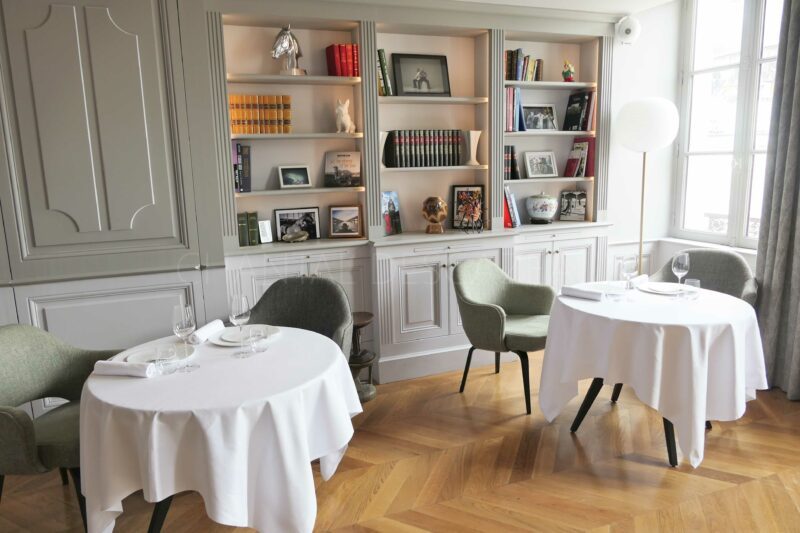 Murs sombres, atmosphère intimiste dans un lieu chaleureux et cosy, avec une déco personnalisée, c’est parti pour un moment suspendu chez le grand Chef médiatique.