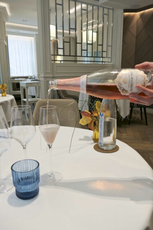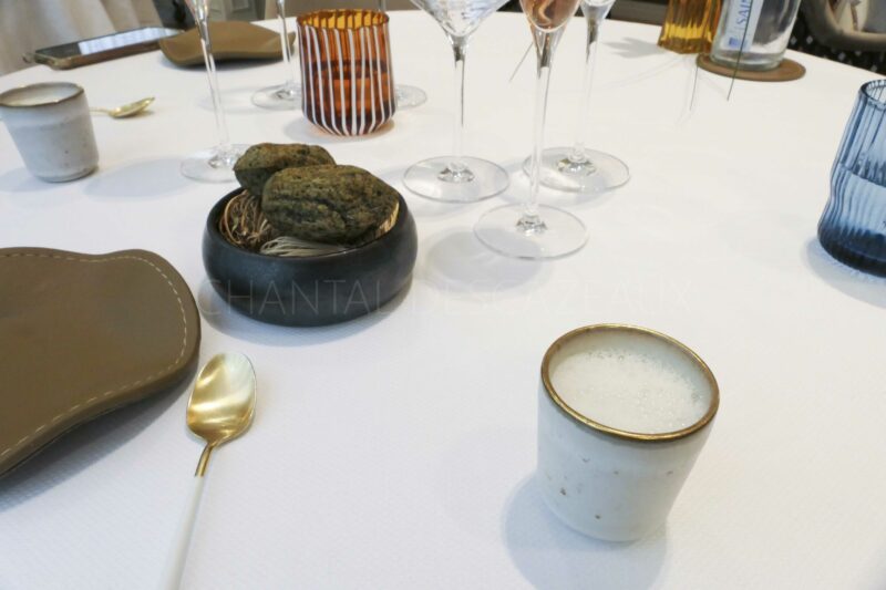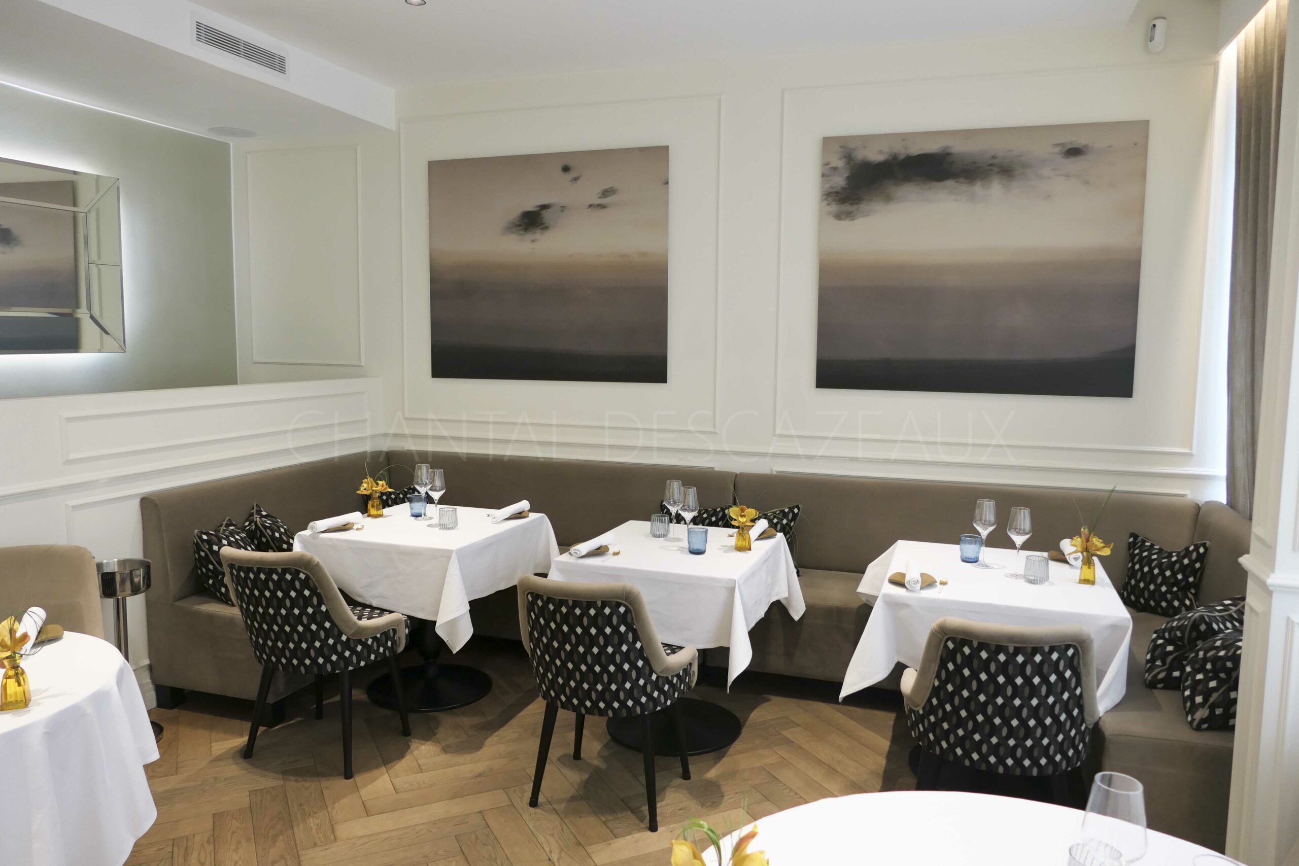 Le décor est sobre, contemporain, jouant sur des tons clairs avec des jeux de lumières et de miroirs. Une atmosphère chaleureuse et feutrée où l’on se sent bien pour apprécier la cuisine de ce grand Chef.